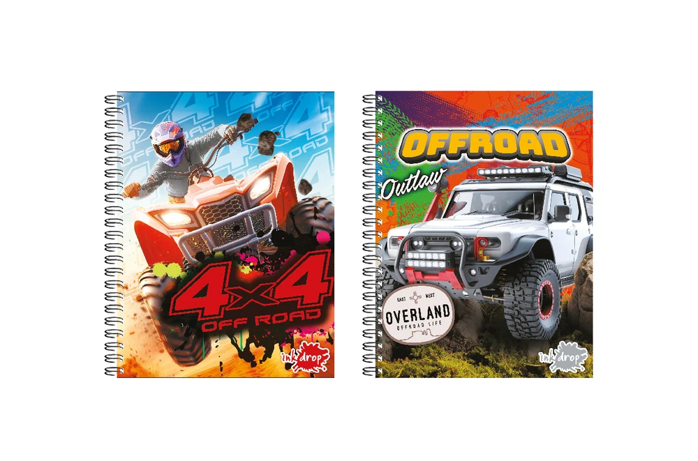 8 Modelos diferentes. 80 Hojas rayadas. Interior bicolor. Papel 70 grs. Espiral doble.