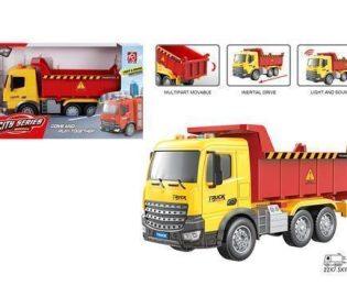 Con un diseño robusto y detalles fieles al mundo de la construcción, este camión de