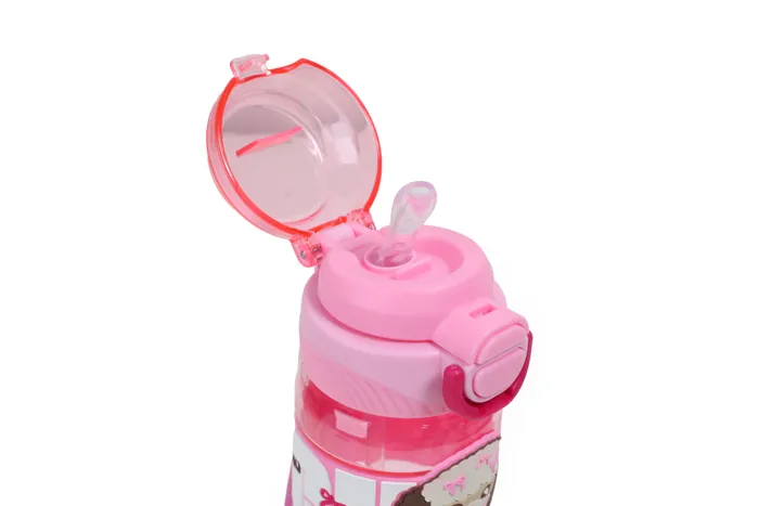 Fácil de abrir, cómoda de llevar con su correa, y con una boquilla rígida para tomar
