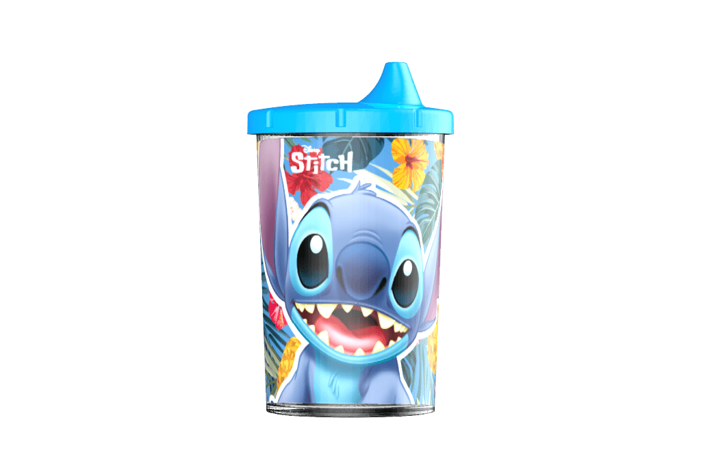 Vaso chico 240 ml. con tapa de plástico estampado.