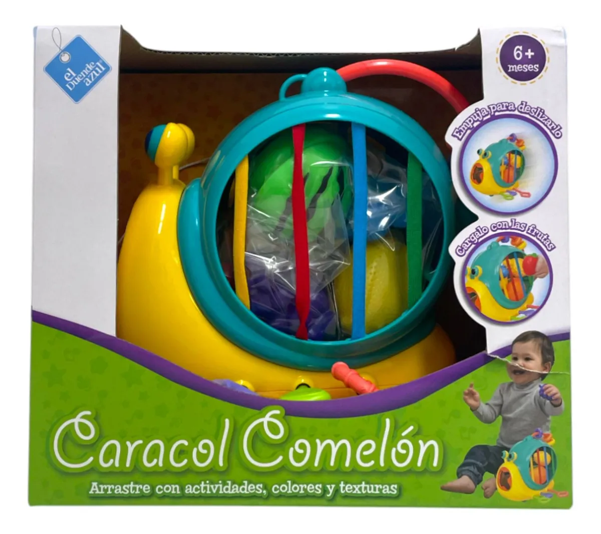 El caracol viene con frutas que tienen abrojo, lo que permite que los niños las “alimenten” al caracol colocándolas en su cuerpo.