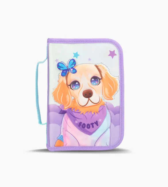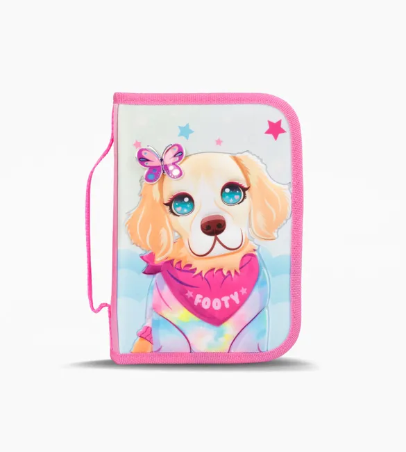 Bolsillo interno transparente con cierre. Interior estampado con logos FOOTY. Elasticos para utiles.