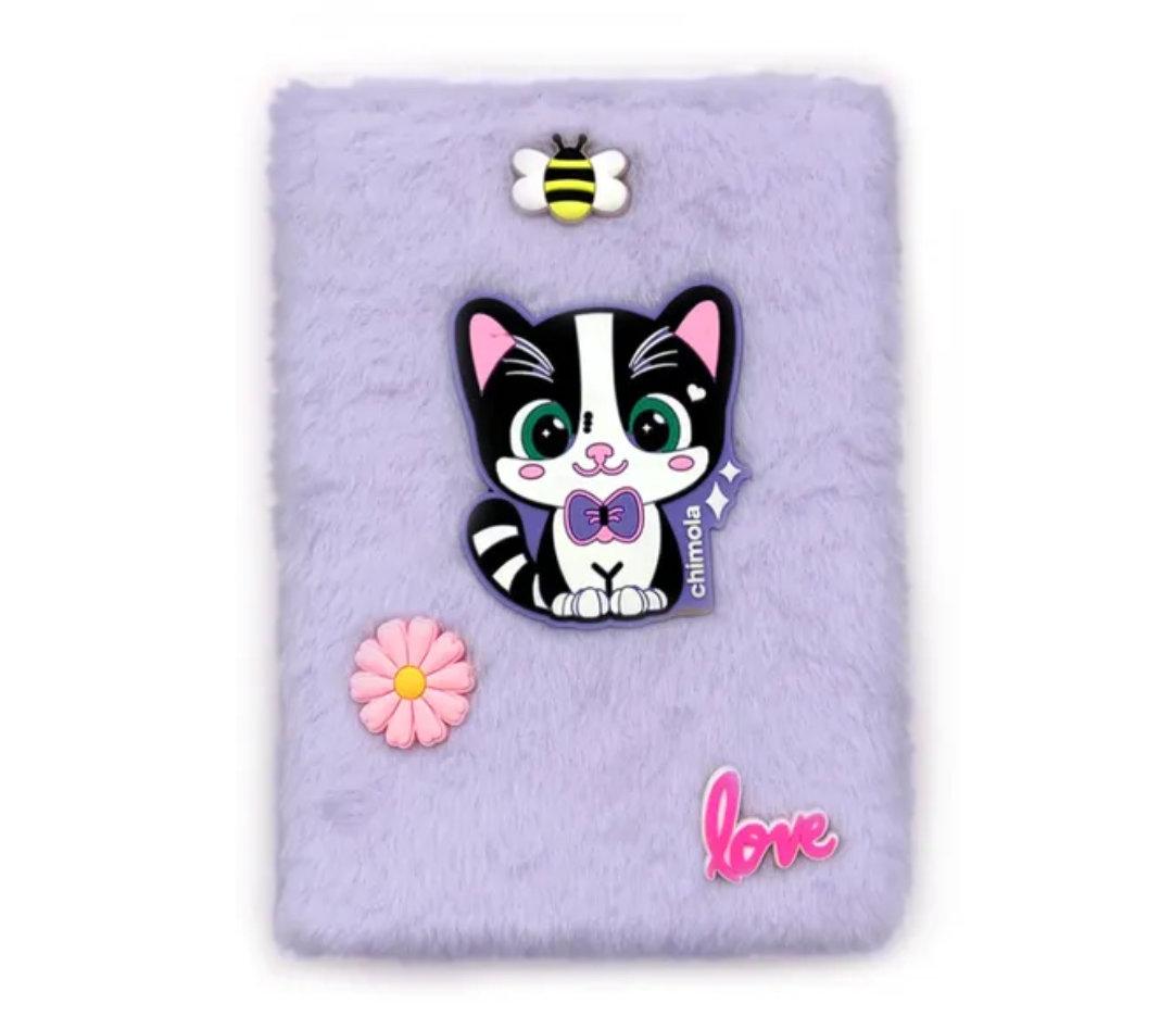 CUADERNO A5 GATITO CON TAPA DE PELUCHE VIOLETA “CHIMOLA”