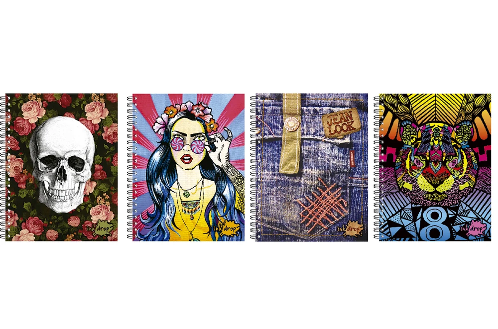 8 Modelos diferentes. 100 Hojas rayadas. Interior bicolor. Papel 70 grs. Laminado PP Mate. Laca UV sectorizada. Hot Stamping. Espiral doble.