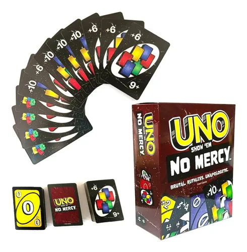 * ¡El juego UNO Show em No Mercy incluye 56 cartas adicionales, reglas nuevas y cartas especiales de lo más despiadadas que hacen de esta versión la edición más brutal hasta la fecha!