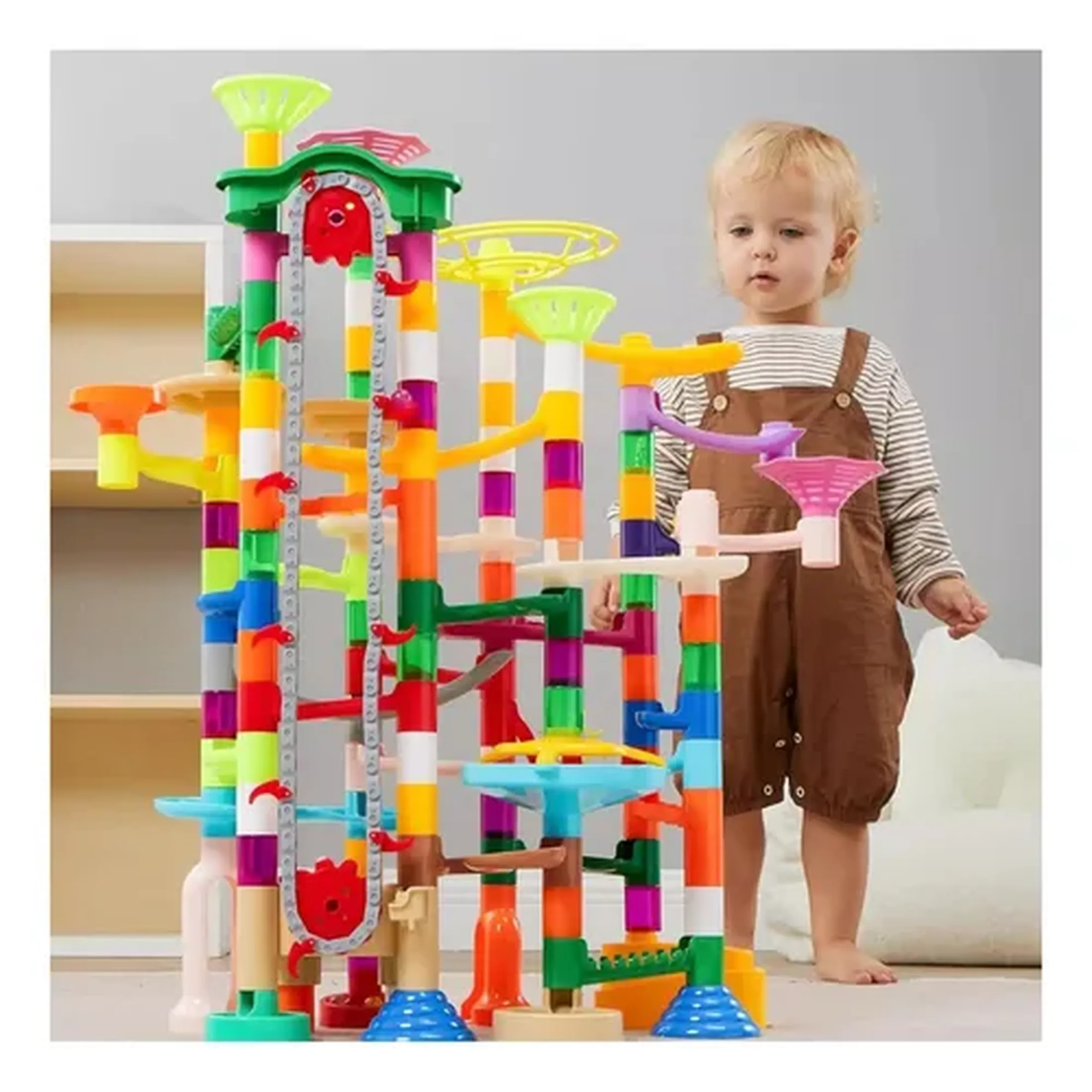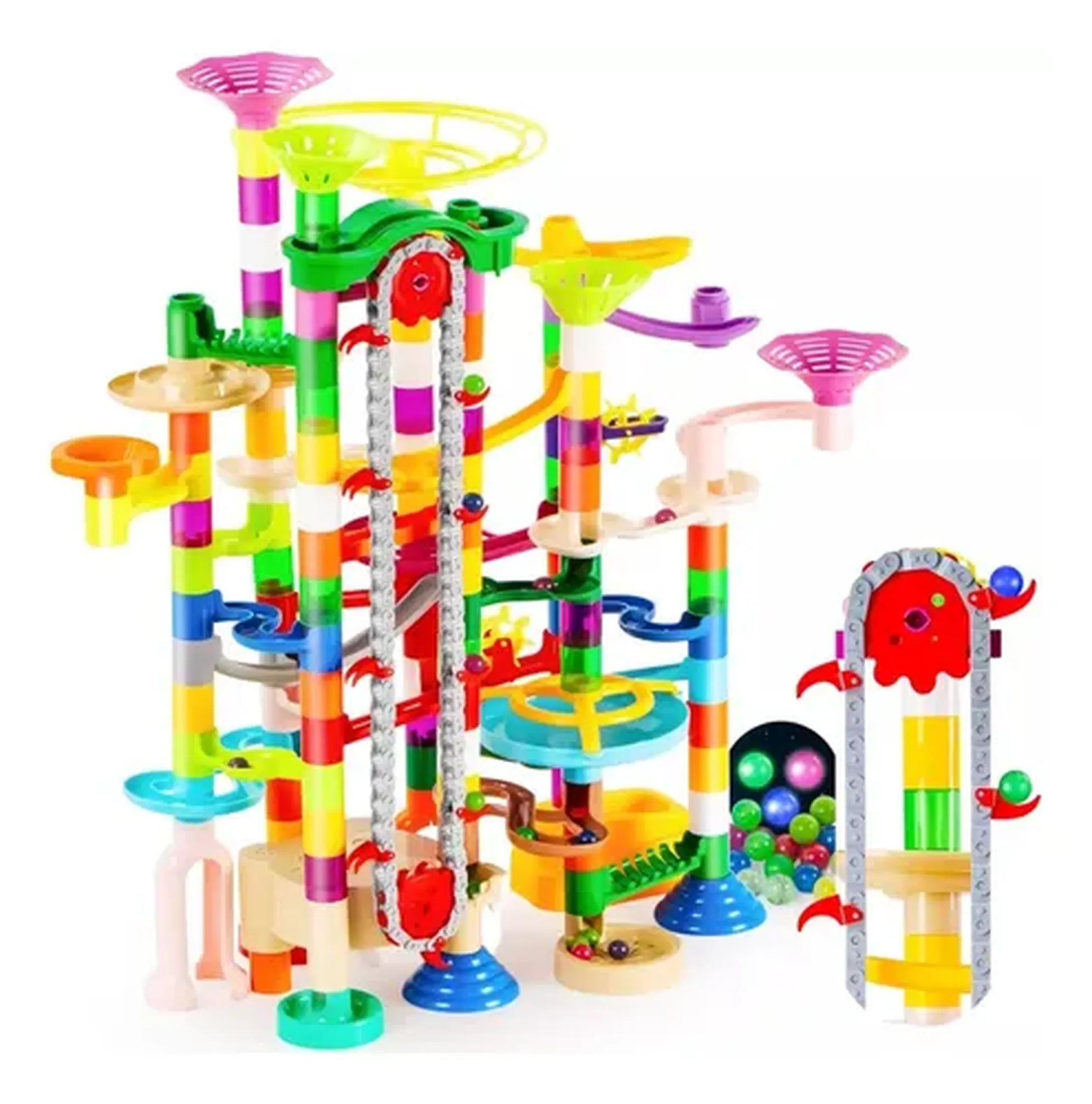 Desliza las canicas a través de la pista y diviértete de principio a fin.