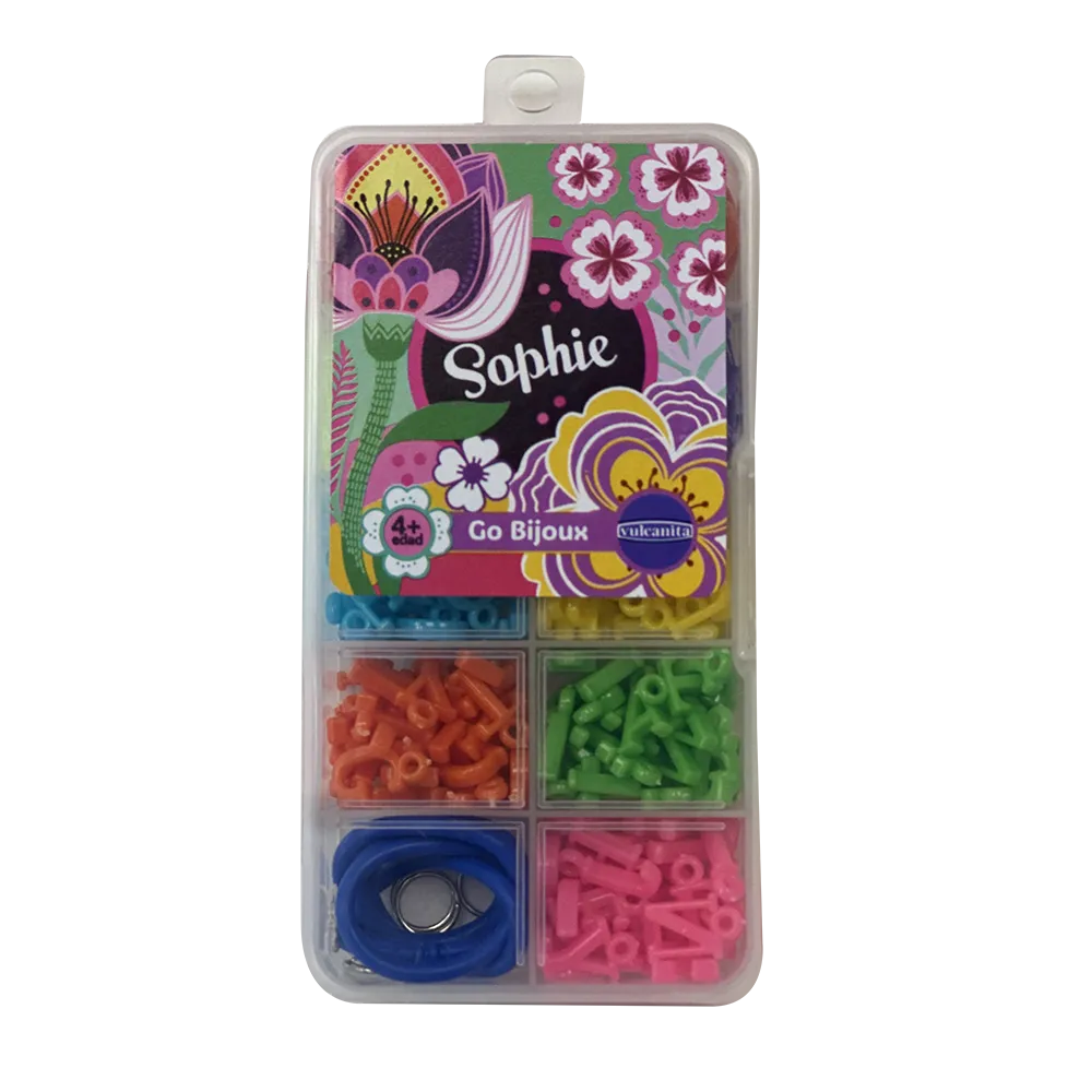 Contiene: Mostacillas collares de goma y dijes de goma.