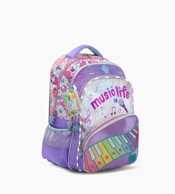 MOCHILA ESPALDA 18″ CON LUCES LED LINEA MUSIC LIFE “FOOTY”