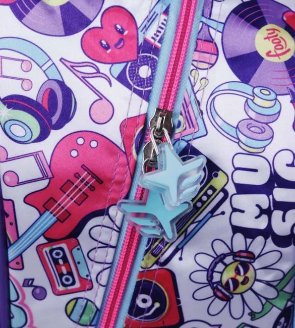 Bolsillo frontal con piano de rubber con sonido de las notas musicales.
