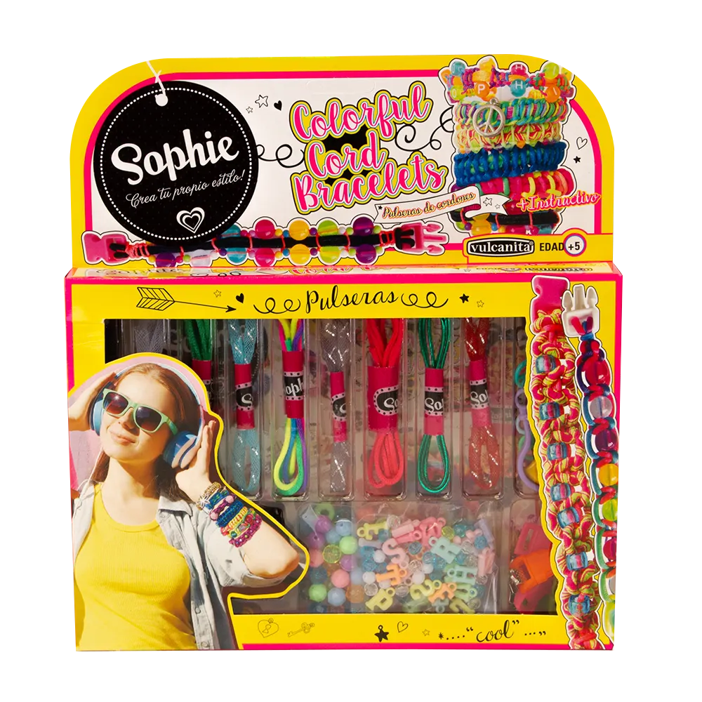 Para armar pulseras con cordones, cierres, ganchos, mostacillas y dijes.
