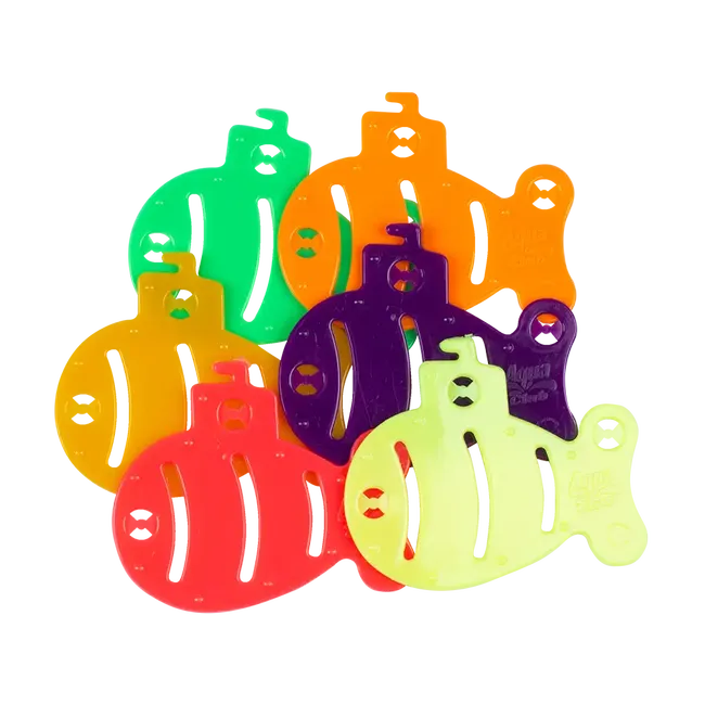 Fabricados en plástico resistente, con colores brillantes para máxima visibilidad bajo el agua.