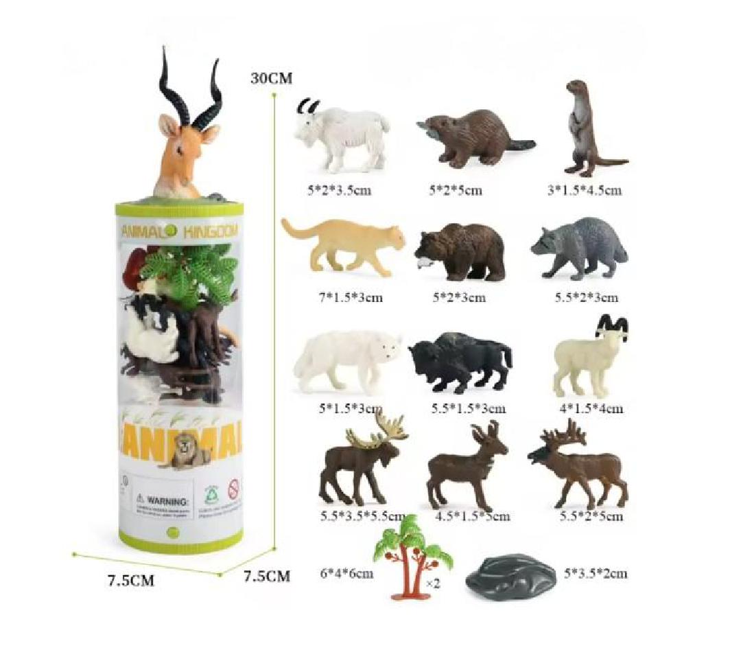 INCLUYE 12 ANIMALITOS DIFERENTES, 1 ARBUSTO Y 1 PIEDRA.