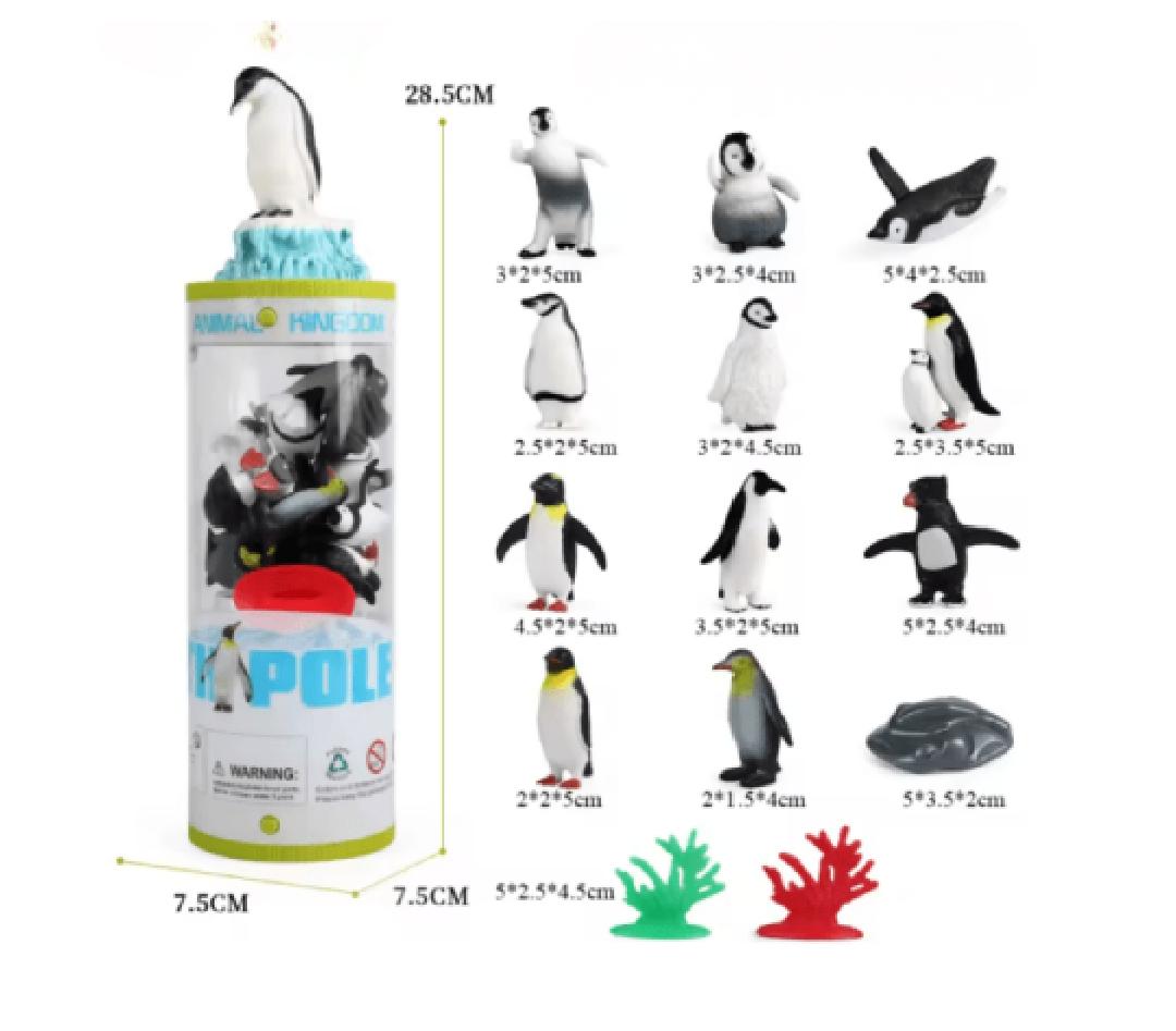 INCLUYE 11 PINGUINOS DIFERENTES, 2 ARBUSTOS Y 1 PIEDRA.