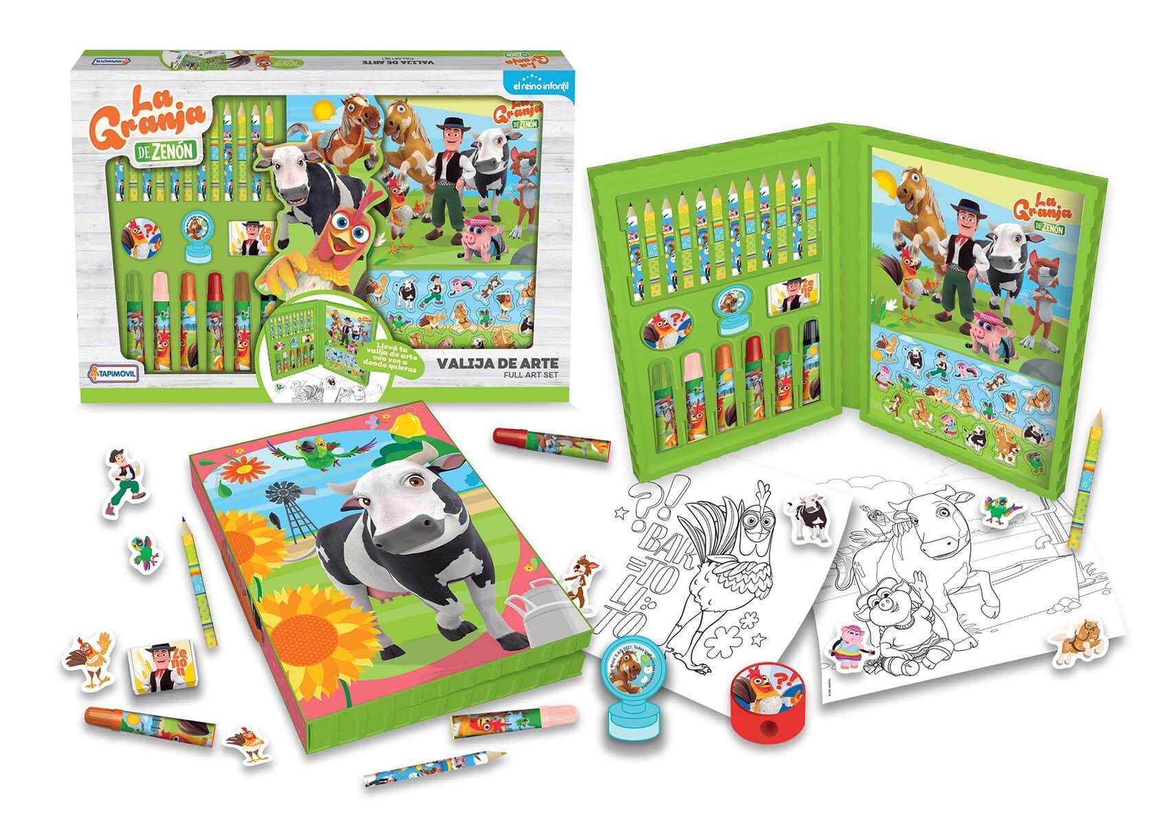 1 valija plegable para llevar, 6 marcadores, 12 lapices de colores, 1 block para