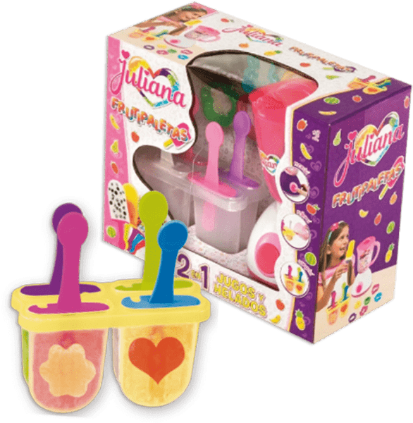 1 licuadora, 4 moldecitos para helado, 6 formitas y un recetario.