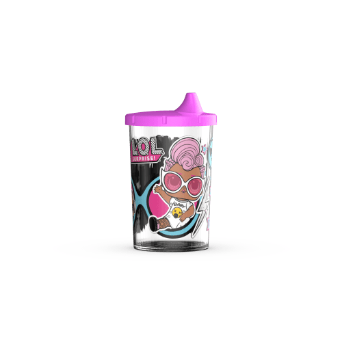 Vaso chico 240 ml. con tapa de plástico estampado.