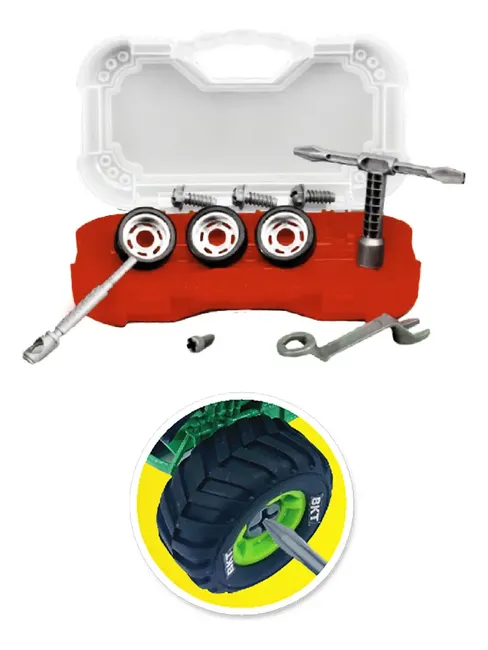 Todas las herramientas, ruedas y componentes del Monster Truck se guardan de