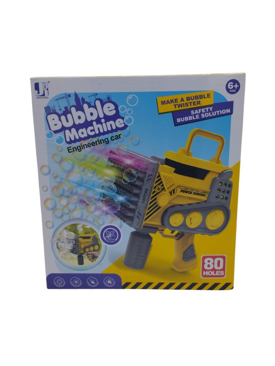 Pistola Lanza Burbujas con luz. 80 puntas. Opera con batería y cargador USB. Incluye bandeja para recarga + botella de solución de burbujas. Medidas del…