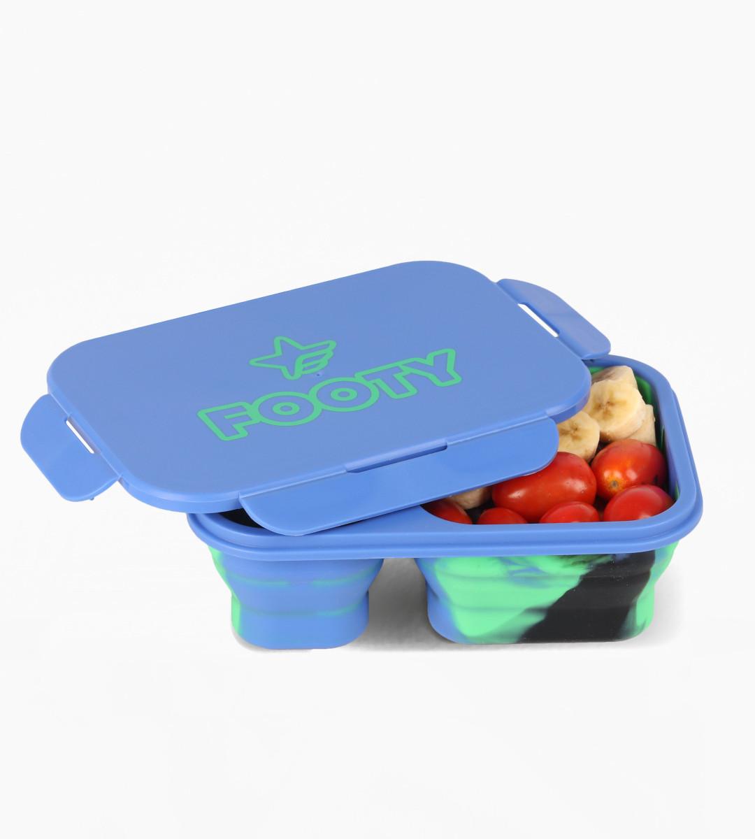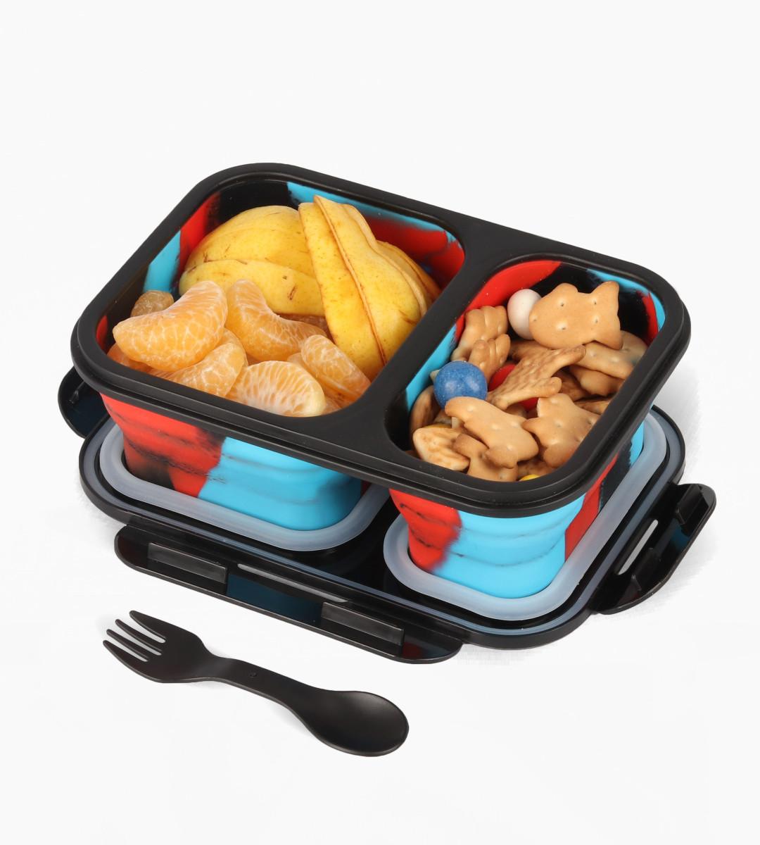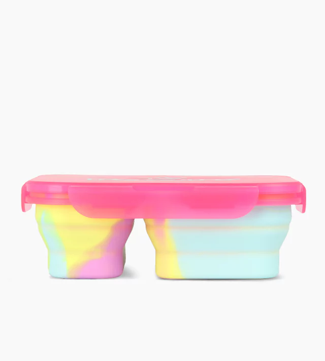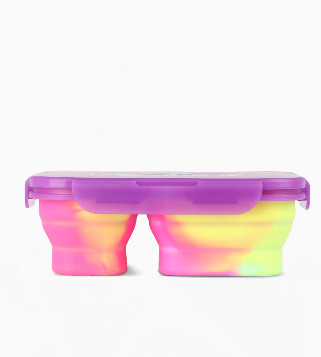 Contenedor plegable de silicona, con sistema de cierre clip hermético. 2 Compartimientos expansible al doble de su tamaño. Apto para lavavajillas y microondas sin tapa. …
